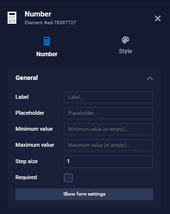 A number field is useful when input is expected to contain numbers but not text. Minimum and maximum values can be specified for this field, which is useful for orders, for example.