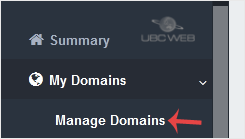3. After a successful login, select Manage Domains from the My Domains drop-down menu.