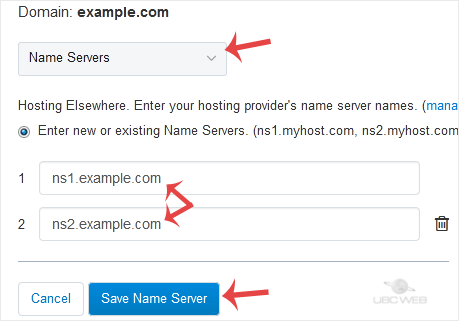 6. Enter your nameservers in the provided text boxes, and click on Save Name Server to save your changes.