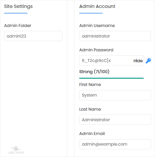 - Admin Email: Your email address. It is helpful for admin account password reset, notification, etc.