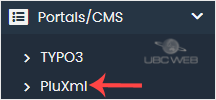 4. On the left side, locate the Portal/CMS category. Click on it and then on the PluXml link that appears.